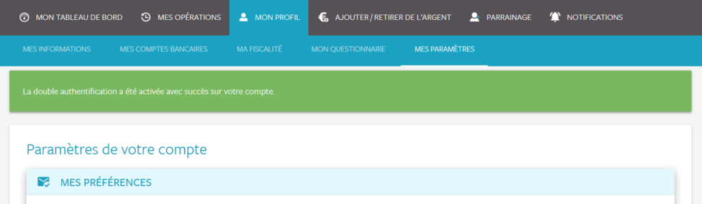 Si l’activation de la double authentification est réussie, vous verrez apparaître ce bandeau :