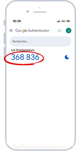 Lors de chaque connexion, vous devrez ouvrir l’application sur votre téléphone et saisir les chiffres indiqués, dans le temps imparti (30 secondes).