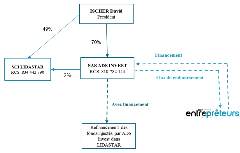 L’opération consiste à refinancer les fonds initialement injectés par ADS INVEST dans la SCI LIDASTAR. Il est envisagé de financer directement la SAS ADS INVEST. Les fonds levés seront mobilisés dans le cadre de ses prochaines opérations de marchand de biens ou autre besoin d’exploitation.